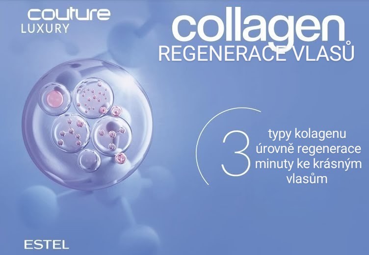 ESTEL Kolagenová procedura obsahuje aktivnější kolagen různých molekulárních velikostí, které poskytují obnovu vlasů okamžitě ve třech směrech. 1. Malé částice rychle vyplňují mezery ve struktuře vlasu. 2. Střední částice se účinně rozkládají po povrchu. 3. Velké částice vytvářejí hydrofixační vrstvu a přispívají k detailní hydrataci. Výsledek-luxusní vlasy,hustota,pružnost,elasticita,hladkost,uzavřené konečky,objem a lesk.